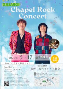★5/17(日)栃木/足利キリスト教会 2026.04.01 Chapel Rock Concert 14:00~(13時半開場)入場無料 足利キリスト教会 〒326-0822 足利市田中町936-40284-72-6546080-5186-8401(牧師:神山和典)